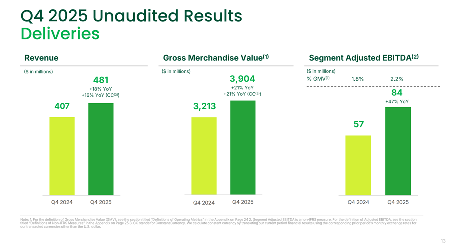 - Deliveries the scale asset (~$7B at 0.4x GMV)