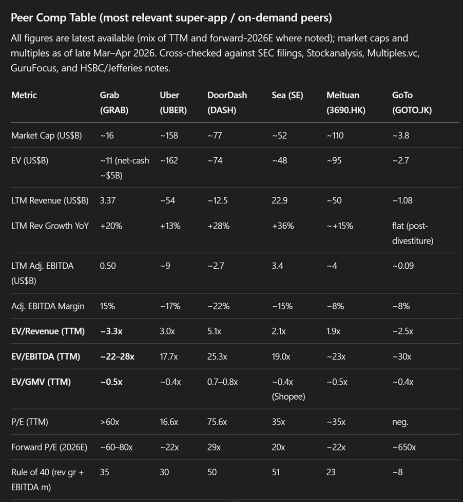 I ran the valuations of Grab vs its peers.