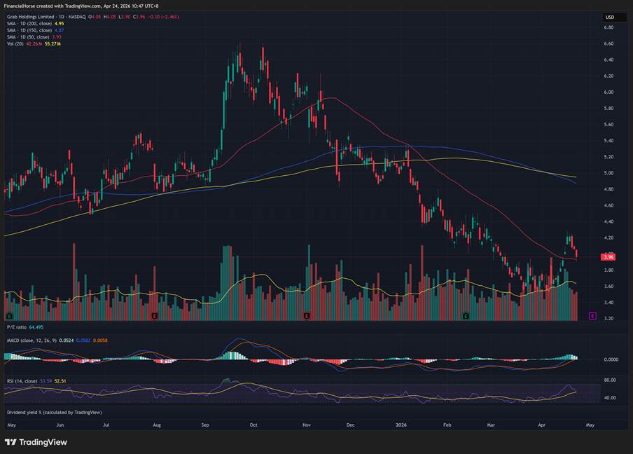 Since its high of $6.5 in October 2025, Grab stock has plunged 45% in 6 months.