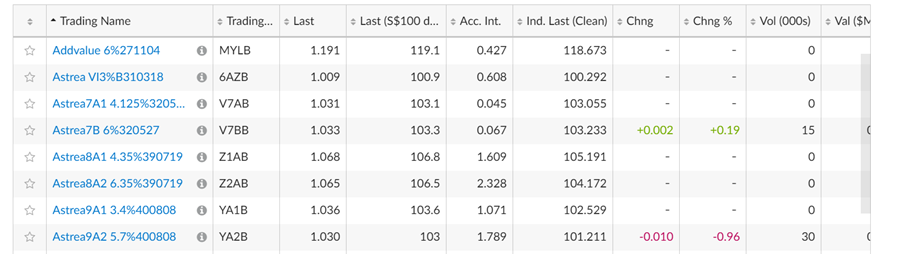 Yes the Astrea series of bonds are traded on the SGX – but just look at the trading volume below (I pulled this before lunch on a trading day).