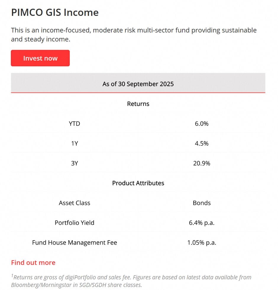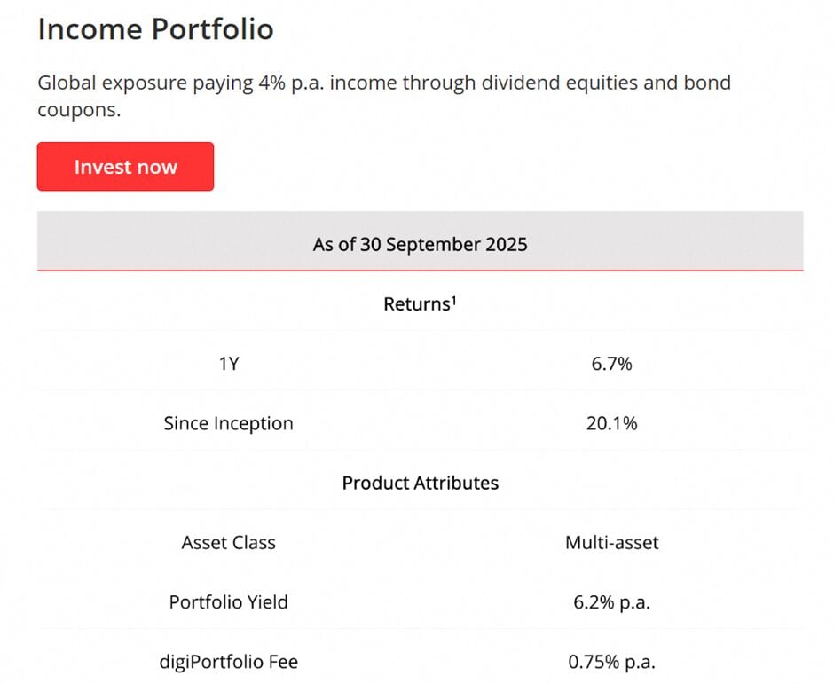 As of 30 September 2025, DBS reports that the Income Portfolio has delivered a 1-year cumulative return of 6.9%.