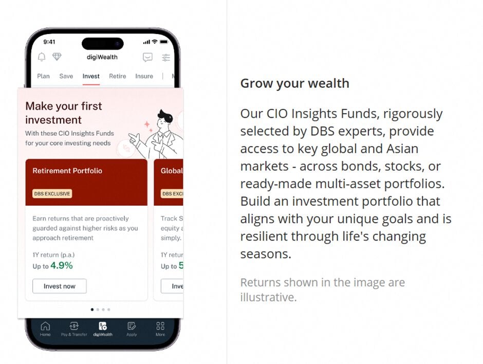 All of which are fully accessible in digiWealth, within DBS digibank:
