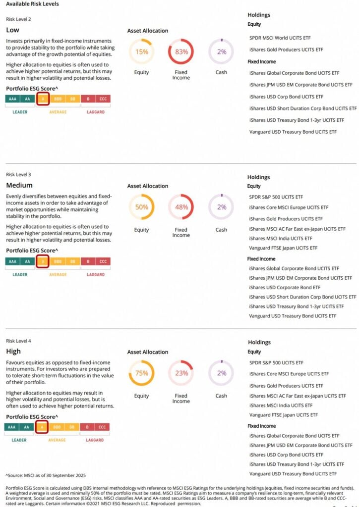 The DBS team decides how much goes into equities vs bonds and rebalances for you – so you don’t need to monitor markets or tweak allocations yourself.