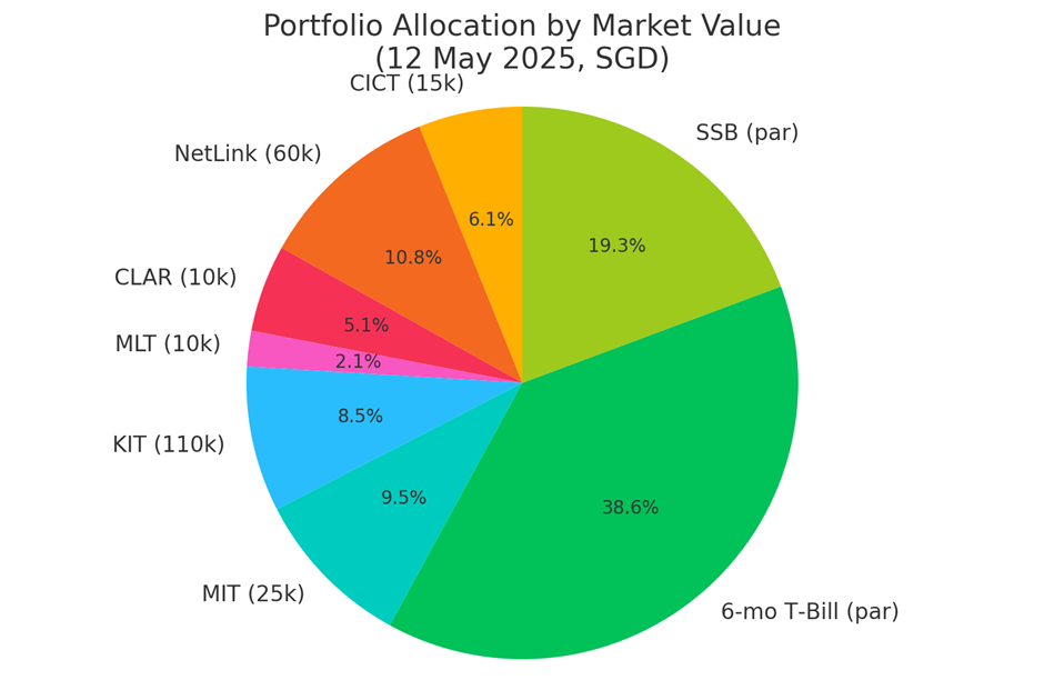 The actual yield is probably higher because the T-Bills and Singapore Savings Bonds likely were bought some time back and have higher yields than the latest ones, but let’s stay big picture here.