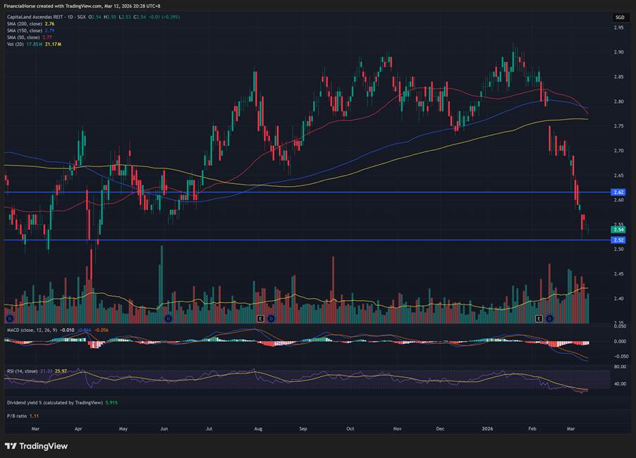 For Blue chip REITs like Ascendas REIT – they have plunged all the way back to April 2025 prices, and offer close to 6% dividend yields.