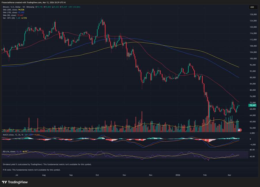 In my previous analyses I have showed that Bitcoin tends to bottom before stock markets, so if markets think the war will end within weeks (as is my base case), Bitcoin could be frontrunning that.