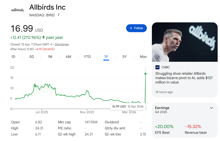 Decided to sell its entire shoe business and use the money to buy GPUs to pivot to AI.