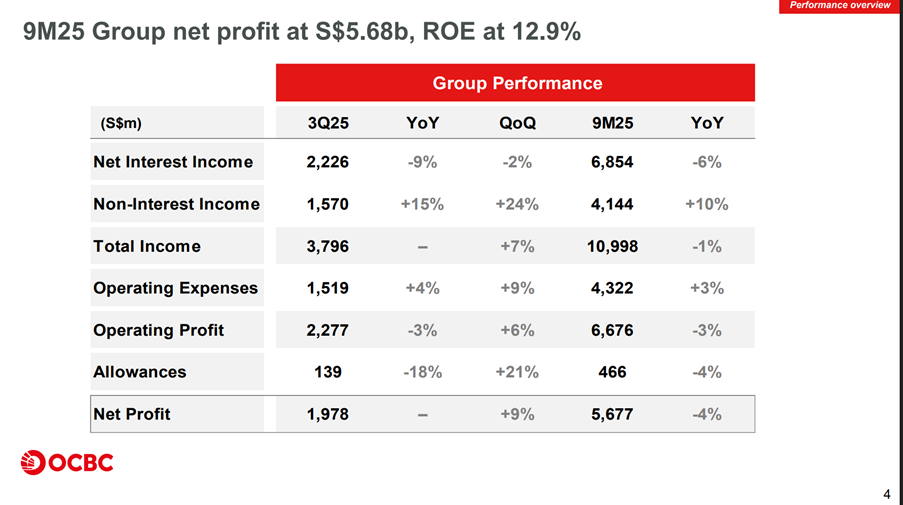 OCBC’s swashbuckling exploits in Great Eastern proved to be shrewd as it comes at a time when banks are facing pressure from the interest rate cuts. For the 3rd quarter financial result, OCBC’s net interest margin plunged 34 basis points year-on-year, causing net interest income to drop 9% to $2.23 billion. However, the 38% increase in insurance income from Great Eastern helped to cushion the impact. In the end, net profit for 3rd quarter remained unchanged year-on-year at $1.98 billion, supported by higher non-interest income and lower allowances.