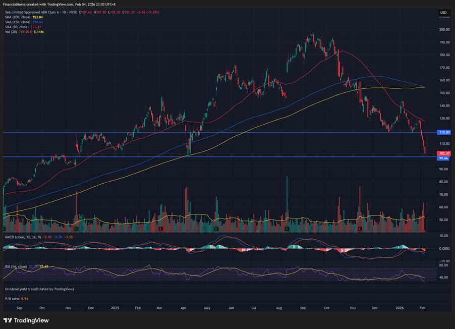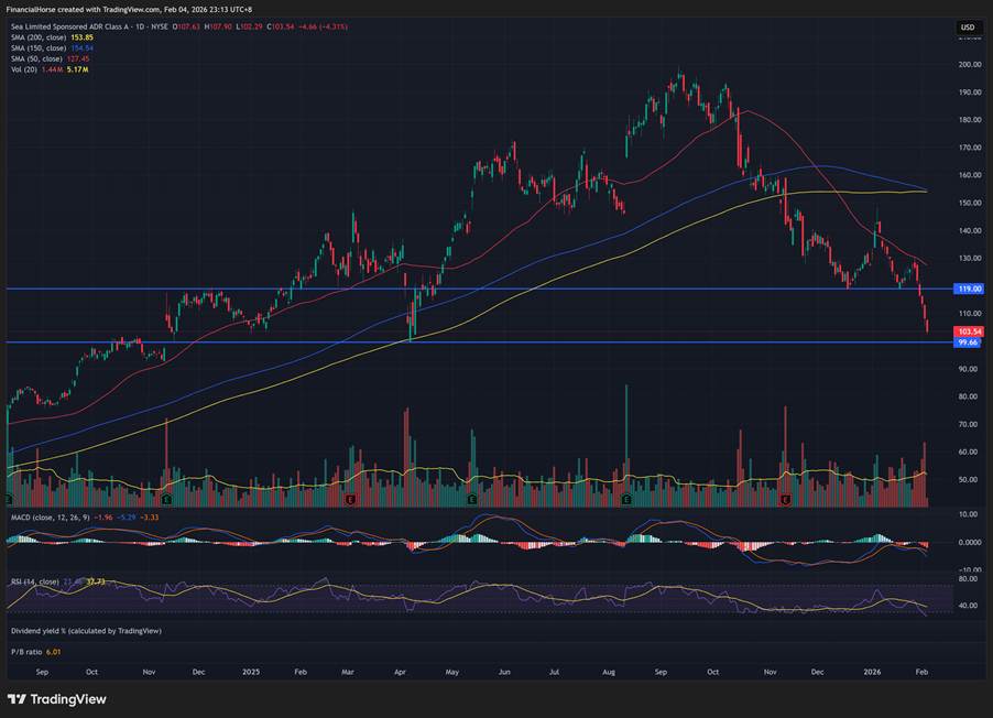 And with the recent sell-off, Sea Limited is down a whopping 50% from its cycle highs of $200.
