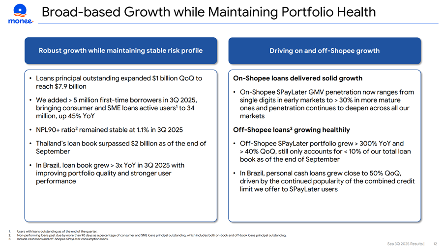 - Macro slowdown in SEA/Brazil pressures consumer spending and credit quality