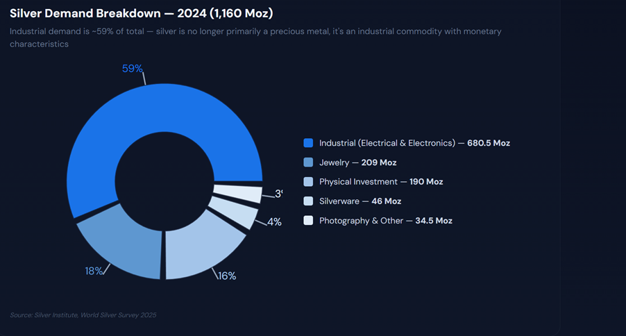 Resources, energy, commodities are now fundamentally strategic and critical > Countries hoarding metals and rare earths, tariffs, trade restrictions vs silver demand which is now a critical commodity for AI and data centres, EVs, solar, military and wars, beside use in monetary.