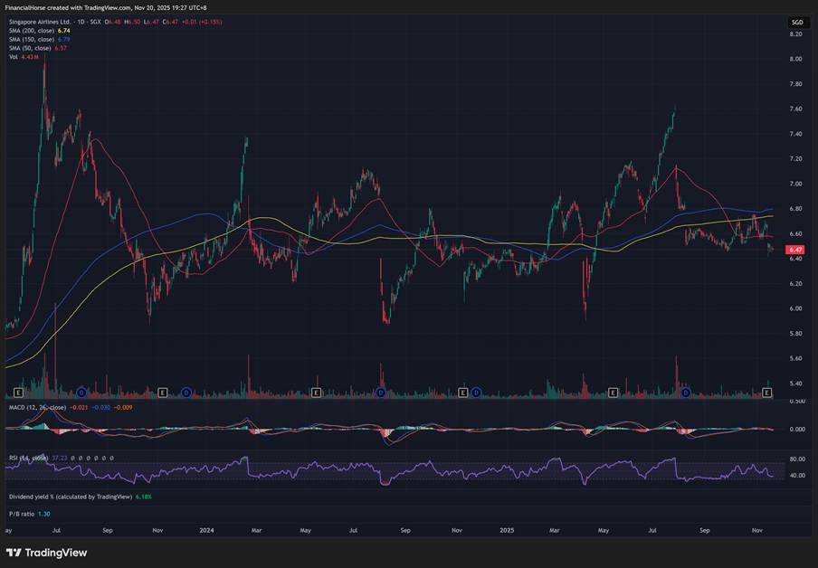 At current prices, Singapore Airlines stock pays a 6.2% trailing dividend yield.