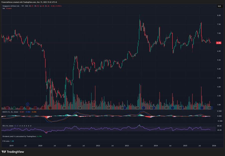 Here is the weekly chart for Singapore Airlines.