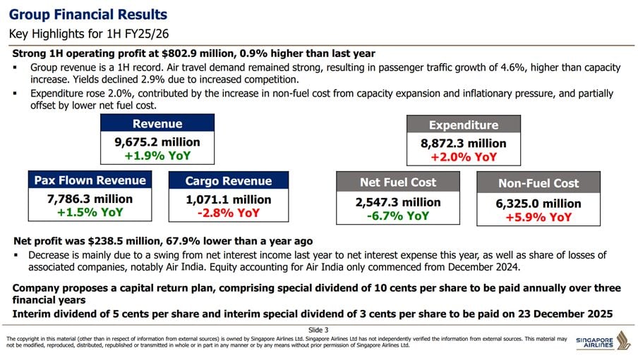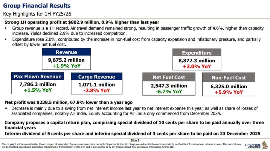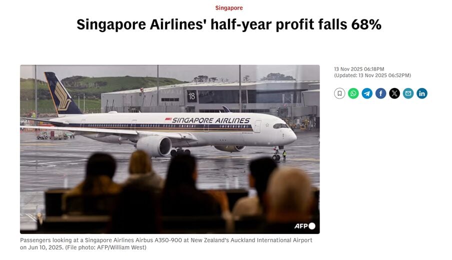 And on to the headline: Singapore Airlines’ half-year profit falls 68%