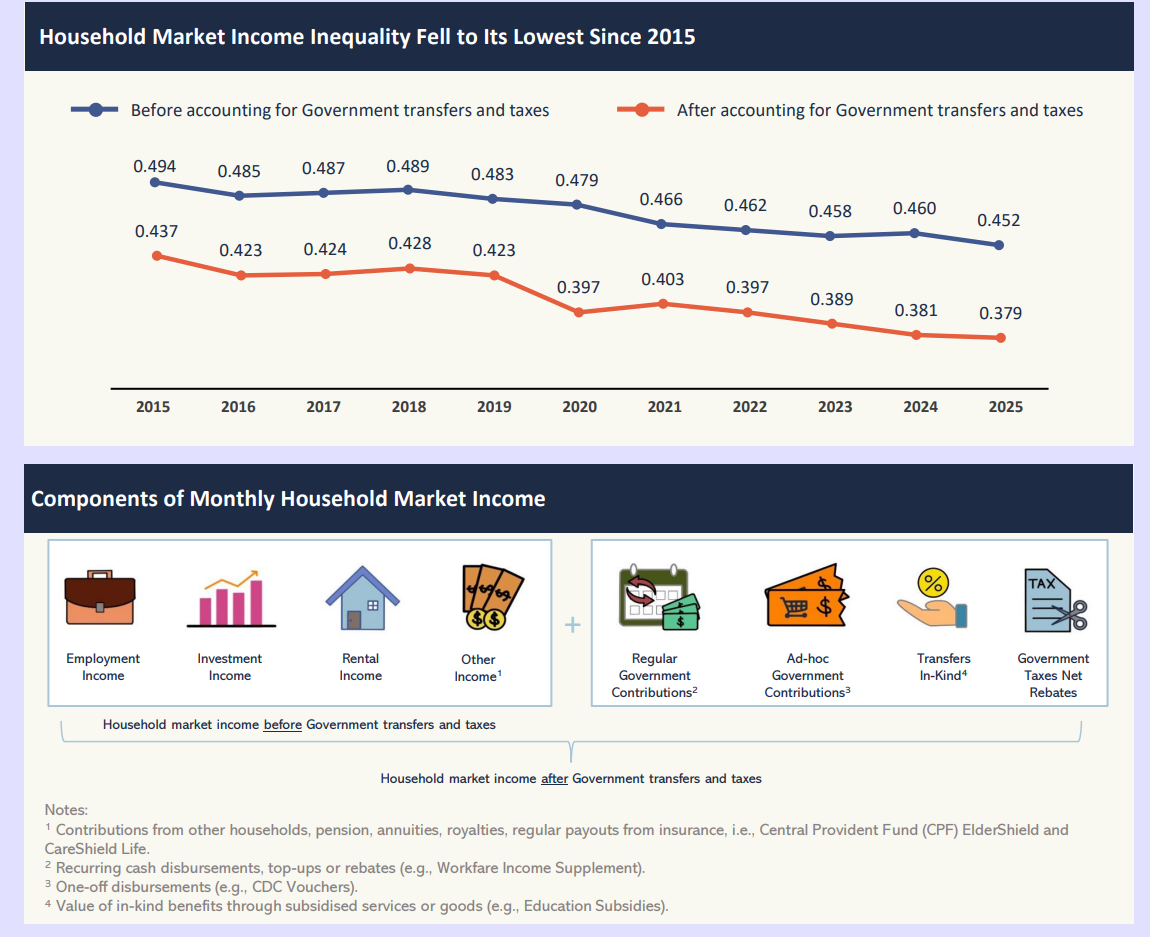 Singapore’s Key Household Income Trends 2025 shows real income gains and a drop in inequality to the lowest since 2015.