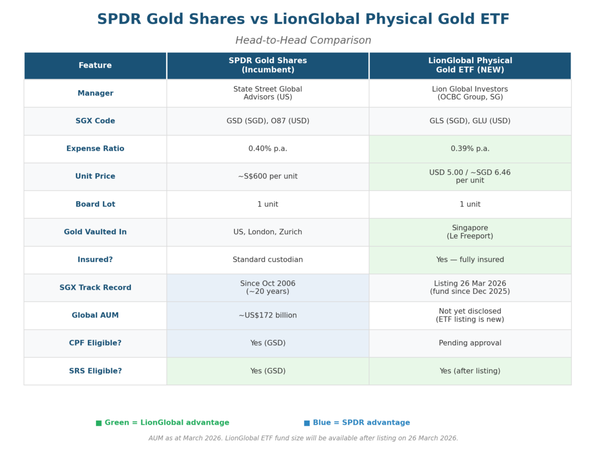 On 26 March 2026, Singapore will get its second gold ETF on the SGX — the LionGlobal Singapore Physical Gold ETF.
