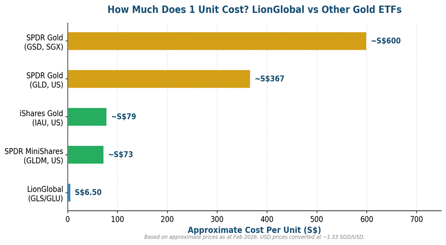 | LionGlobal ETF (GLS/GLU) | ~SGD 6.46 | 0.39% | SRS yes; CPF pending | Singapore | Yes | Yes | DCA; SG-vaulted gold; new investors |