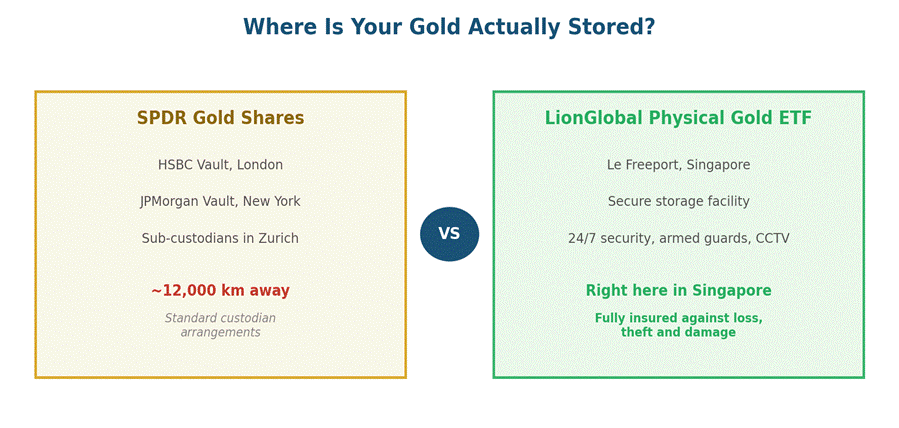LionGlobal Singapore Physical Gold ETF looks more attractive for investors who care about location peace of mind and DCA strategy: its gold is stored in Singapore, allocated holdings are insured, the fee is marginally lower, and the entry ticket is much smaller.