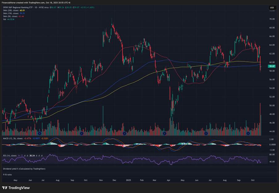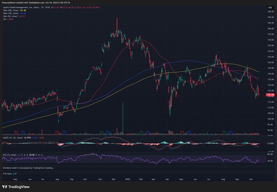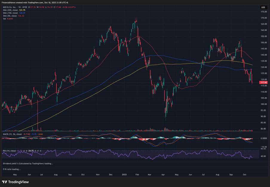 Likewise – Private equity / private credit companies like Apollo / KKR are looking terrible – in a clear downtrend since late 2024 and nearing April 2025 lows: