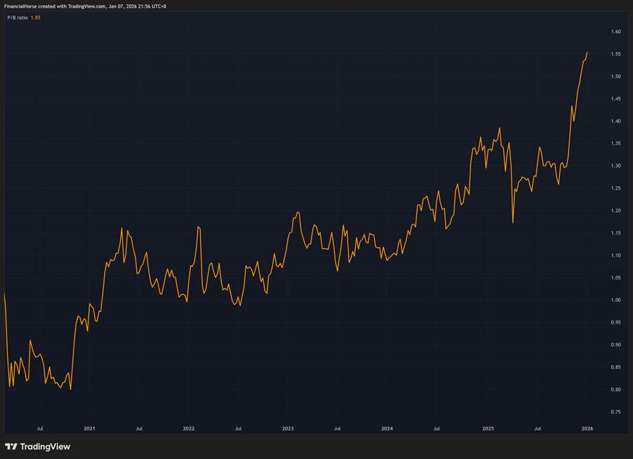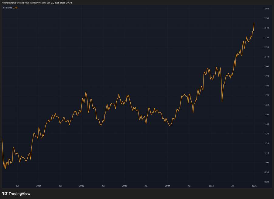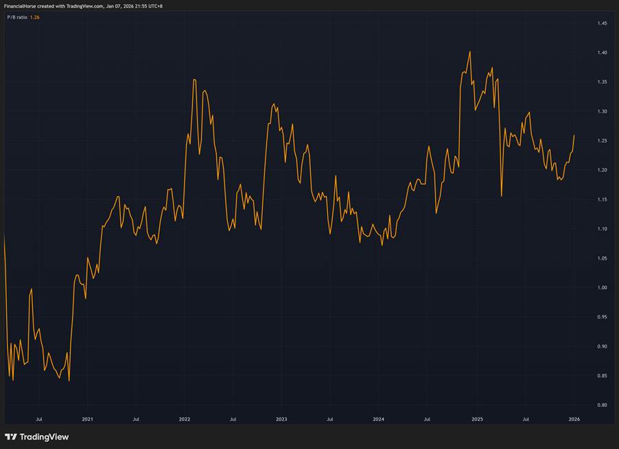 | P/B Ratio | 2.2x | 1.6x | 1.2x |